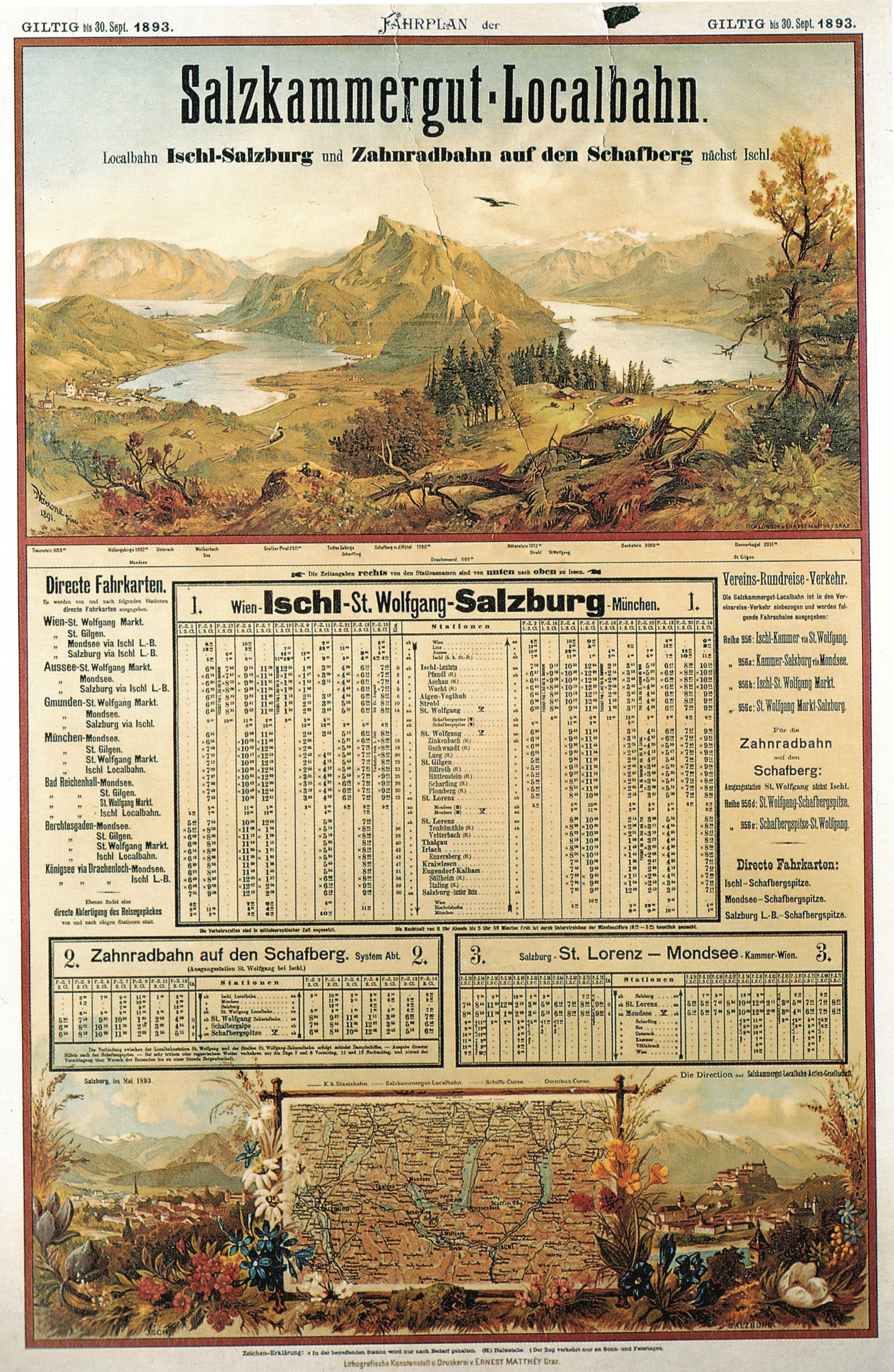 Fahrplan der Salzkammergut-Localbahn 1893. Neuwertig erhältlich im SKGLB-Shop !